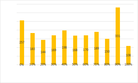 下圖,A股控股股東股權(quán)質(zhì)押比例分布圖,圖中可以看到,控股股東股權(quán)質(zhì)押比例達(dá)到100%的已經(jīng)有108支股票,這108個控股股東已經(jīng)沒有保證金可加,如果再次下跌,必然爆倉!