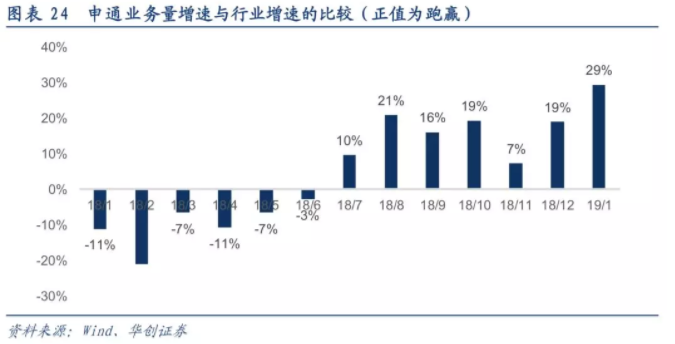 與此同時(shí)申通的經(jīng)營(yíng)情況也開始出現(xiàn)明顯的改善。從2018年分月數(shù)據(jù)來看,從2018年7月開始,申通快遞的業(yè)務(wù)量增速開始跑贏行業(yè)增速,這也就意味著申通快遞的市占率從2018年7月開始逐步上升。截止2019年3月,申通業(yè)務(wù)量市占率達(dá)到10.64%,較去年提升接近1個(gè)百分點(diǎn)。